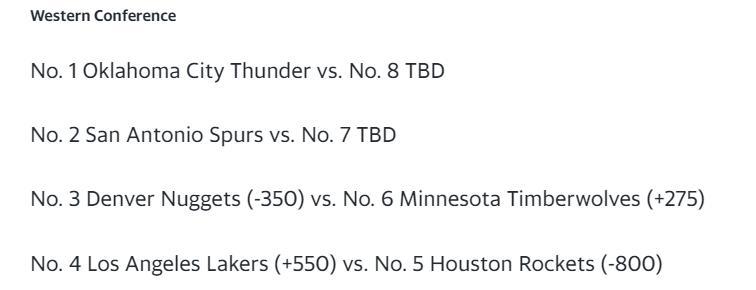 西部的情況,掘金(3)VS森林狼(6),掘金+360、森林狼+275,看好掘金晉級;