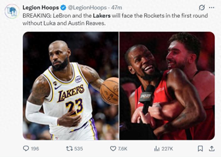 NBA常規賽已經完結,湖人鎖定西部第四,火箭鎖定西部第五,那麼在首輪就是火箭VS湖人,LAL手握主場優勢。