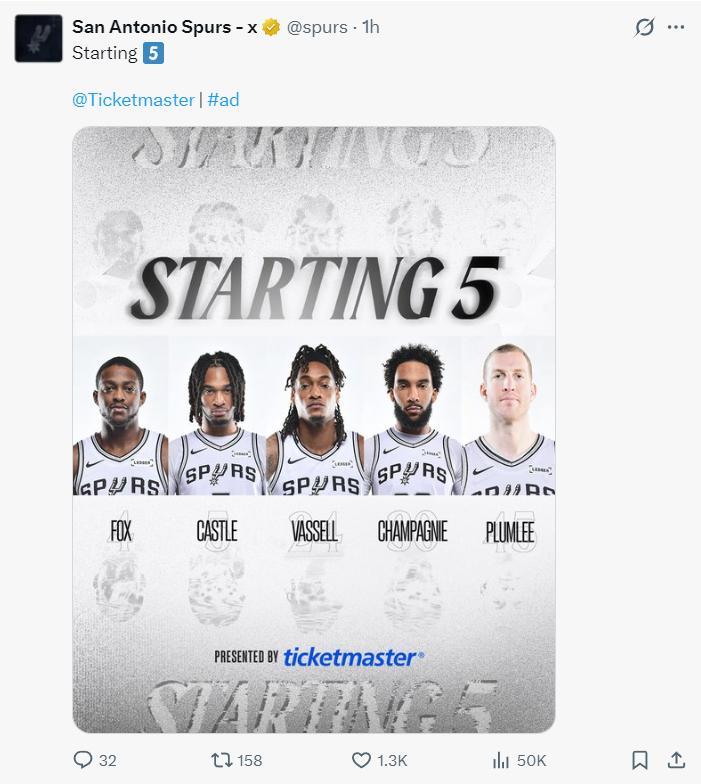 馬刺:福克斯24分6籃板,卡斯爾10分9助攻11籃板,瓦塞爾19分,凱爾登18分6籃板,卡布13分5籃板5助攻,巴恩斯12分。