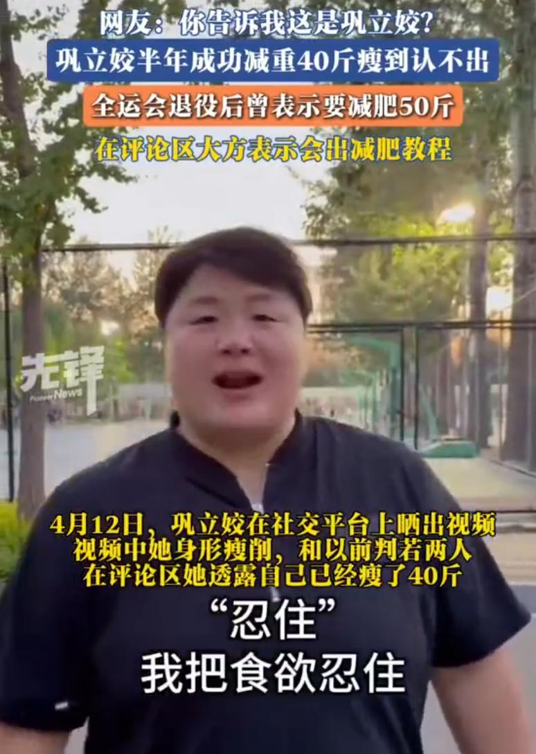 北京時間4月12日,奧運冠軍鞏立姣在個人社媒上發佈了一條視頻,視頻中鞏立姣跟去年全運會後判若兩人,37歲的鞏立姣瘦了一大圈。很多人都在評論區詢問鞏立姣瘦了多少,鞏立姣回覆“40斤”。