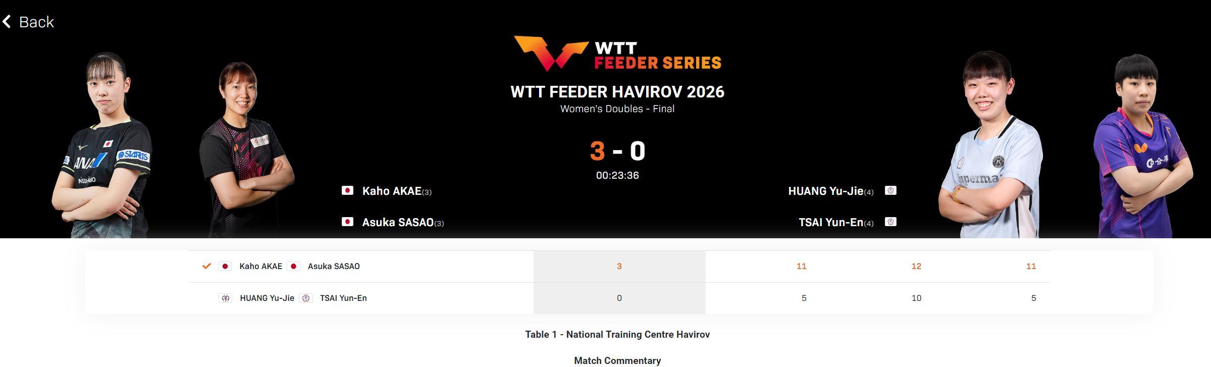 在兩小時前,赤江夏星搭檔笹尾明日香在女雙決賽中3-0黃愉偼/蔡昀恩奪冠,三局比分:【11-5,12-10,11-5】。換言之這兩場比賽赤江夏星都擊敗了黃愉偼,對於黃愉偼最慘烈的一點‘全是橫掃’,這說明赤江夏星的天賦遠在黃愉偼之上。