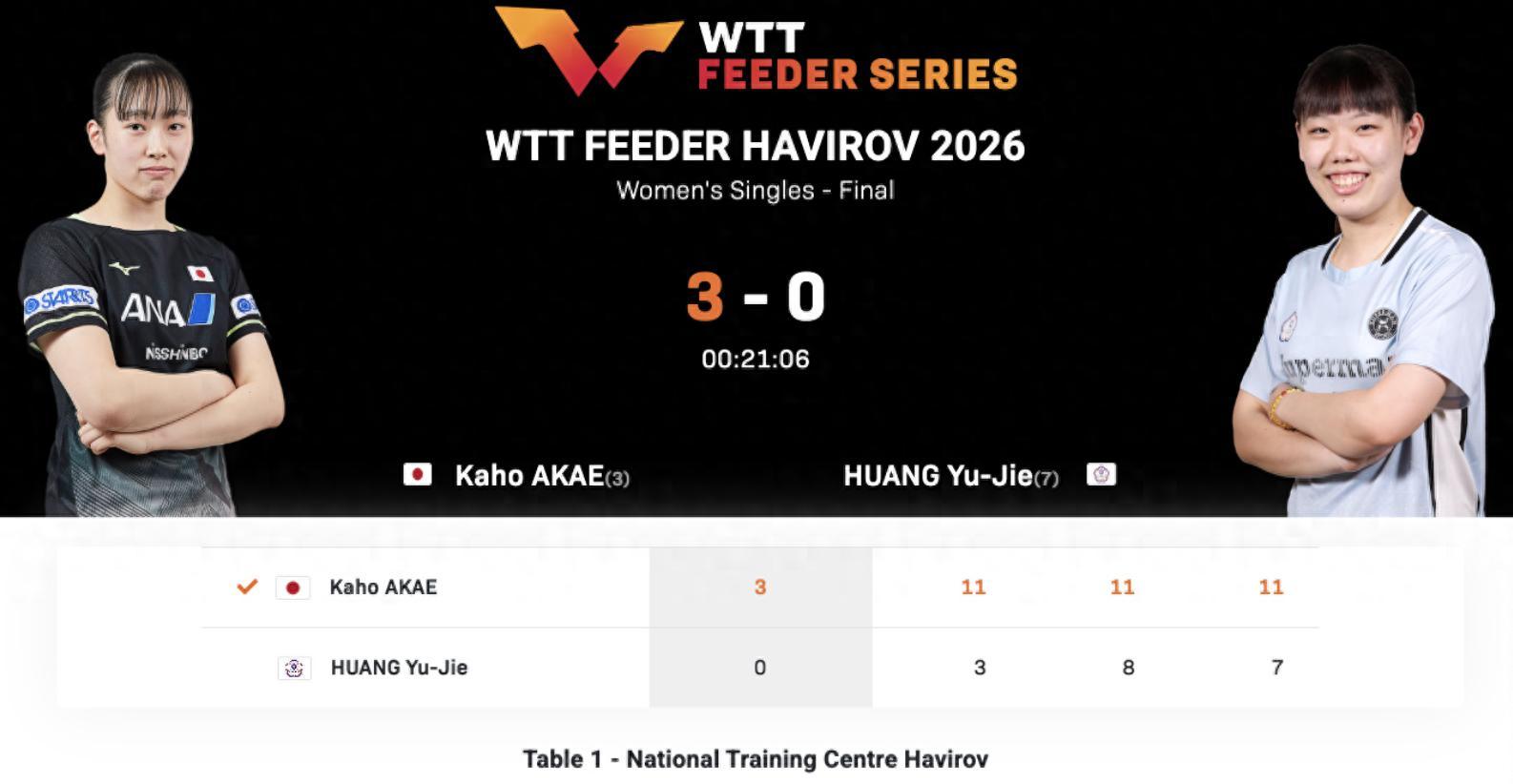 北京時間4月17日晚,WTT支線賽哈維若夫站女單決賽,赤江夏星3-0橫掃黃愉偼奪冠,三局比分:【11-3,11-8,11-7】。這場決賽日乒21歲的小將赤江夏星贏得較爲輕鬆,這也是她短短兩小時內的拿下的第二個冠軍。