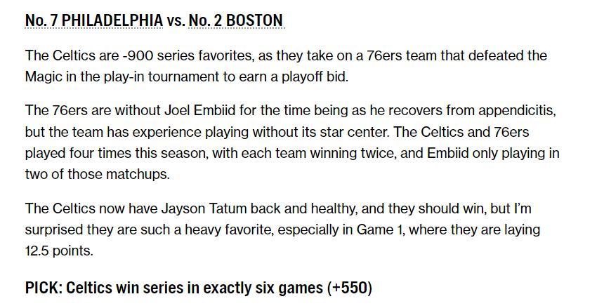 魔術VS活塞,目前美媒還沒有出活塞是幾場擊敗魔術,但活塞晉級賠率-425,而魔術只有+340,這算是斷崖的支持活塞隊,健康的坎寧安+杜倫不是魔術能抵擋的。