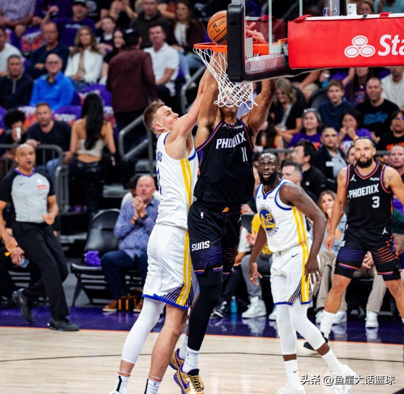 太陽在上半場比賽一度領先到了18分,只不過後續勇士是成功追近比分,但是下半場比賽杰倫格林一直保持進攻狀態,所以太陽再次拉開比分,最終太陽也是完勝勇士。本場比賽杰倫格林打出非常優異的表現,如果不是杰倫格林打出三分爆發表現,那麼太陽恐怕難以贏得比賽勝利,全場比賽結束杰倫格林得到了36分6籃板4助攻的數據,其中外線三分14中8,而格林單場8記三分追平附加賽紀錄。其他的太陽球員,狄龍14中4得到了13分3助攻的數據,布克得到了20分6籃板8助攻的數據,而且在第四節最後階段格林在場邊跟布克吵架,最終布克和格林兩人都被驅逐。