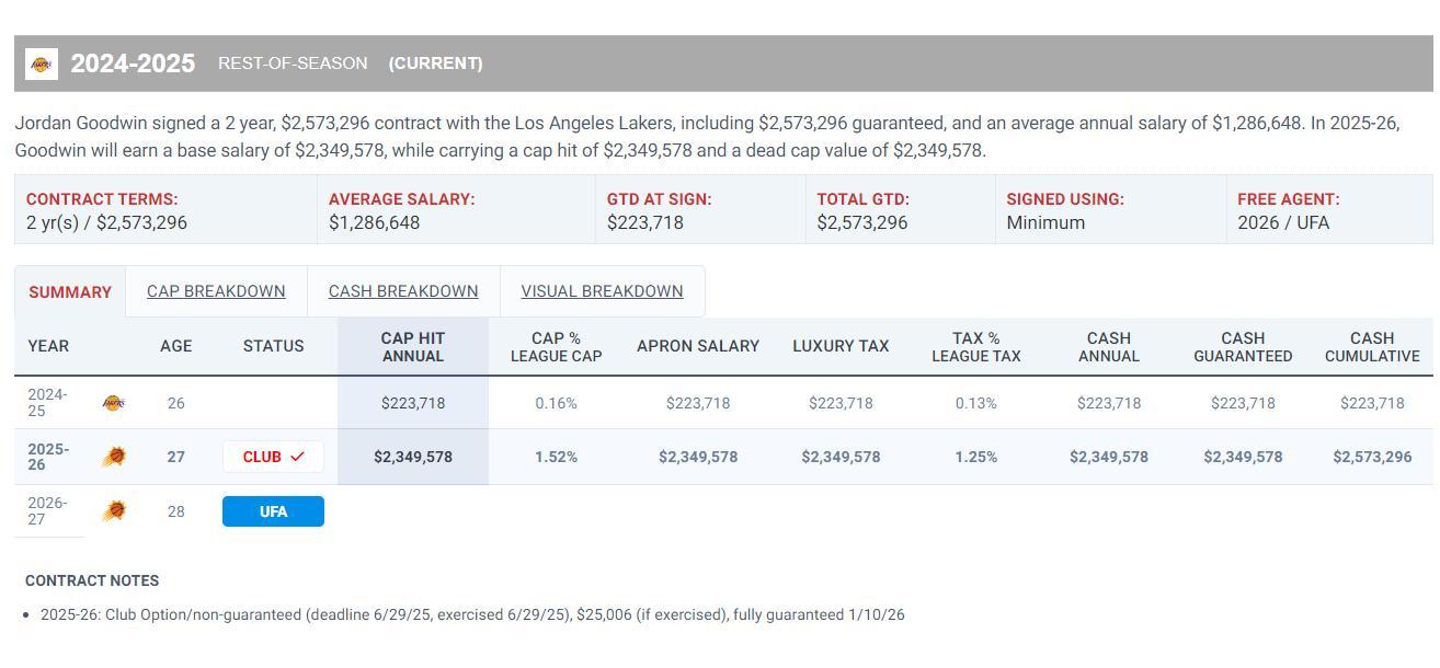 最關鍵的一點,27歲的古德溫本賽季的薪水只有234萬美元,他已經坐穩太陽先發之位。