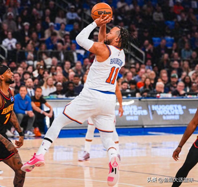第三節比賽唐斯罰球得分,奧孔武命中三分後尼克斯打出一波6-0,麥科勒姆上籃得分後唐斯罰球得分,哈特反擊扣籃得分後麥科勒姆命中三分,接下來兩隊進攻陷入停滯,後面布里奇斯突破得分,羅賓遜罰球2中1後布里奇斯完成暴扣,約翰遜連得4分後布倫森罰球得分,本來之後約翰遜幫助老鷹緊咬比分,可末尾階段唐斯、阿努諾比持續得分,三節比賽結束尼克斯領先9分。第四節比賽庫明加上籃得分,羅賓遜扣籃得分後麥克布萊德命中三分,庫明加打成2+1後麥科勒姆拋投命中,麥克布萊德命中三分後沃克也命中三分,接下來尼克斯一波12-3直接領先到16分。本來之後尼克斯保持大比分領先,可後續老鷹打出一波11-0,後面唐斯得分止血,最終尼克斯拒絕逆轉贏得比賽勝利。