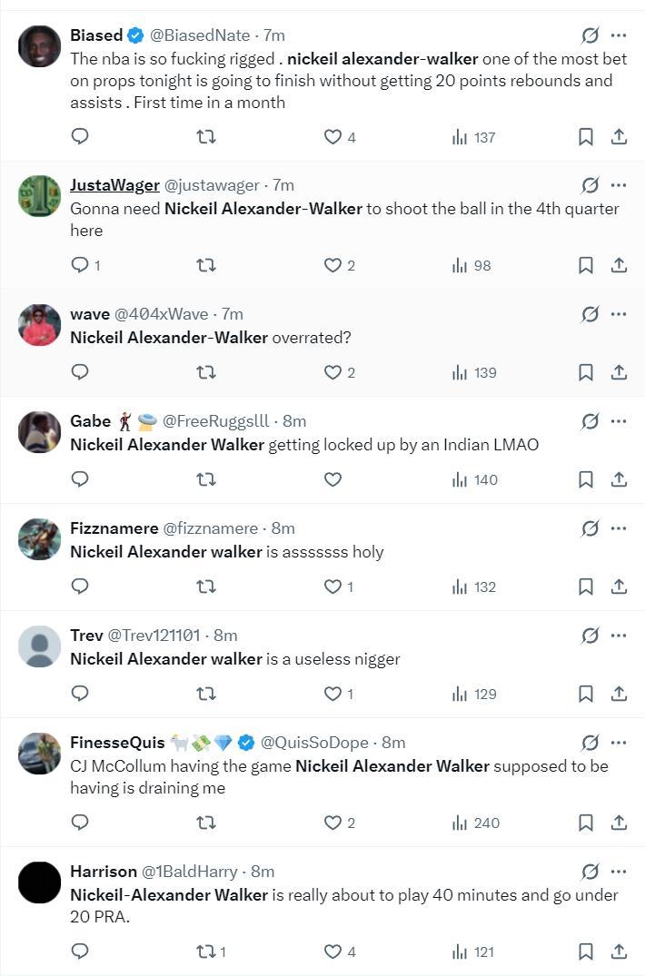 亞歷山大-沃克這場比賽遭遇了多方炮轟:被高估了、露餡了、根本不如麥科勒姆、沒用的廢物、就算打40分鐘也拿不了20分、他跟拉梅洛-鮑爾是一個類型的廢材。