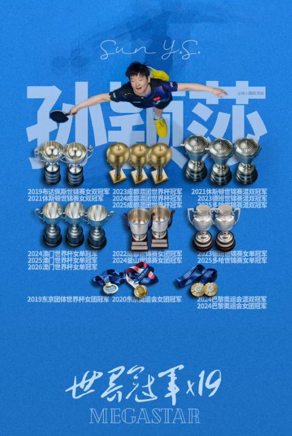 25歲的孫穎莎已經拿到19個世界冠軍(單打5冠、女雙兩冠、混雙4冠、女團5冠、混團3冠),德塔文預測孫穎莎未來有希望繼續刷新體育明星價值上限,孫穎莎甚至有希望成爲‘劃時代的超級巨星。’