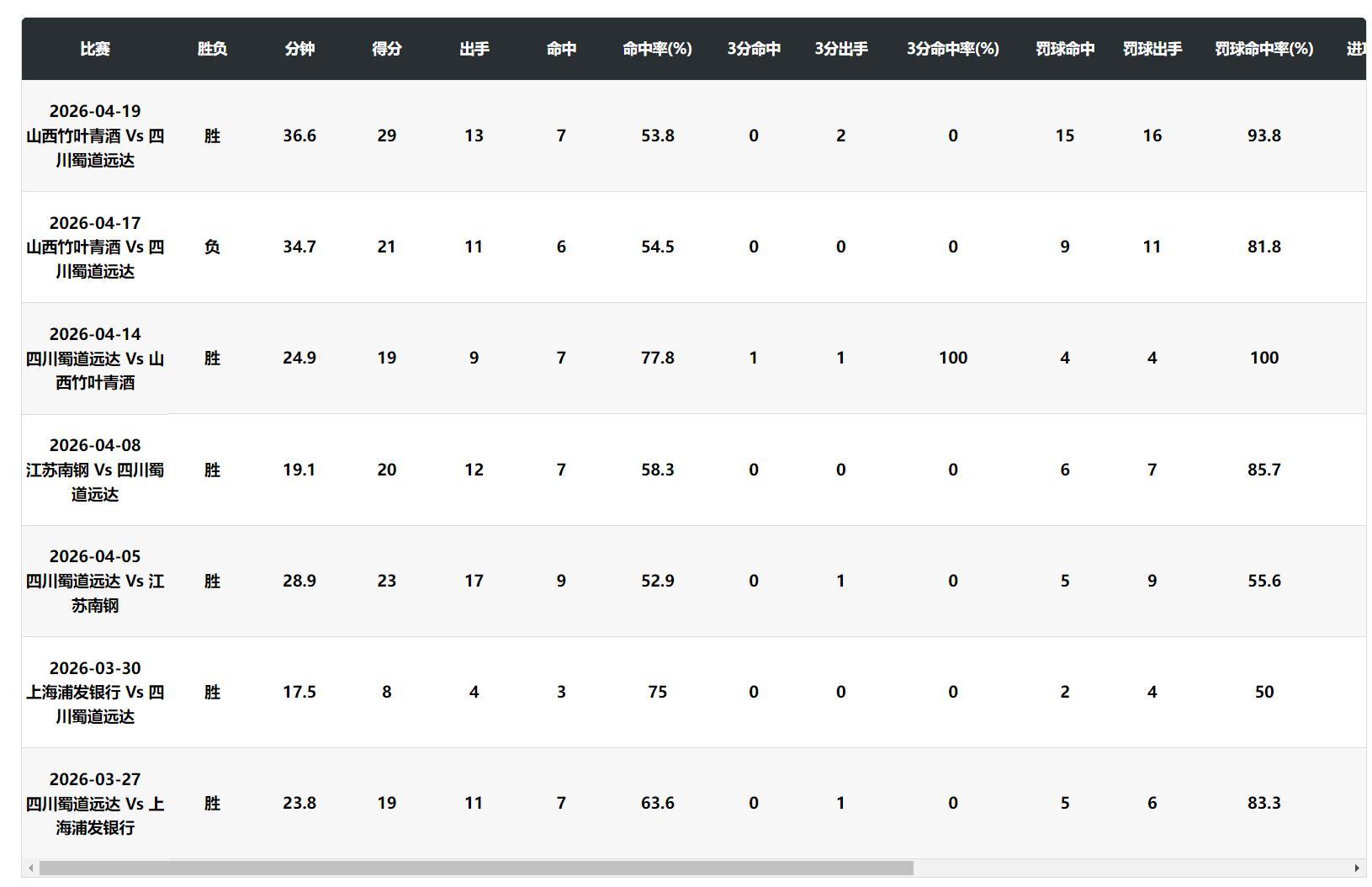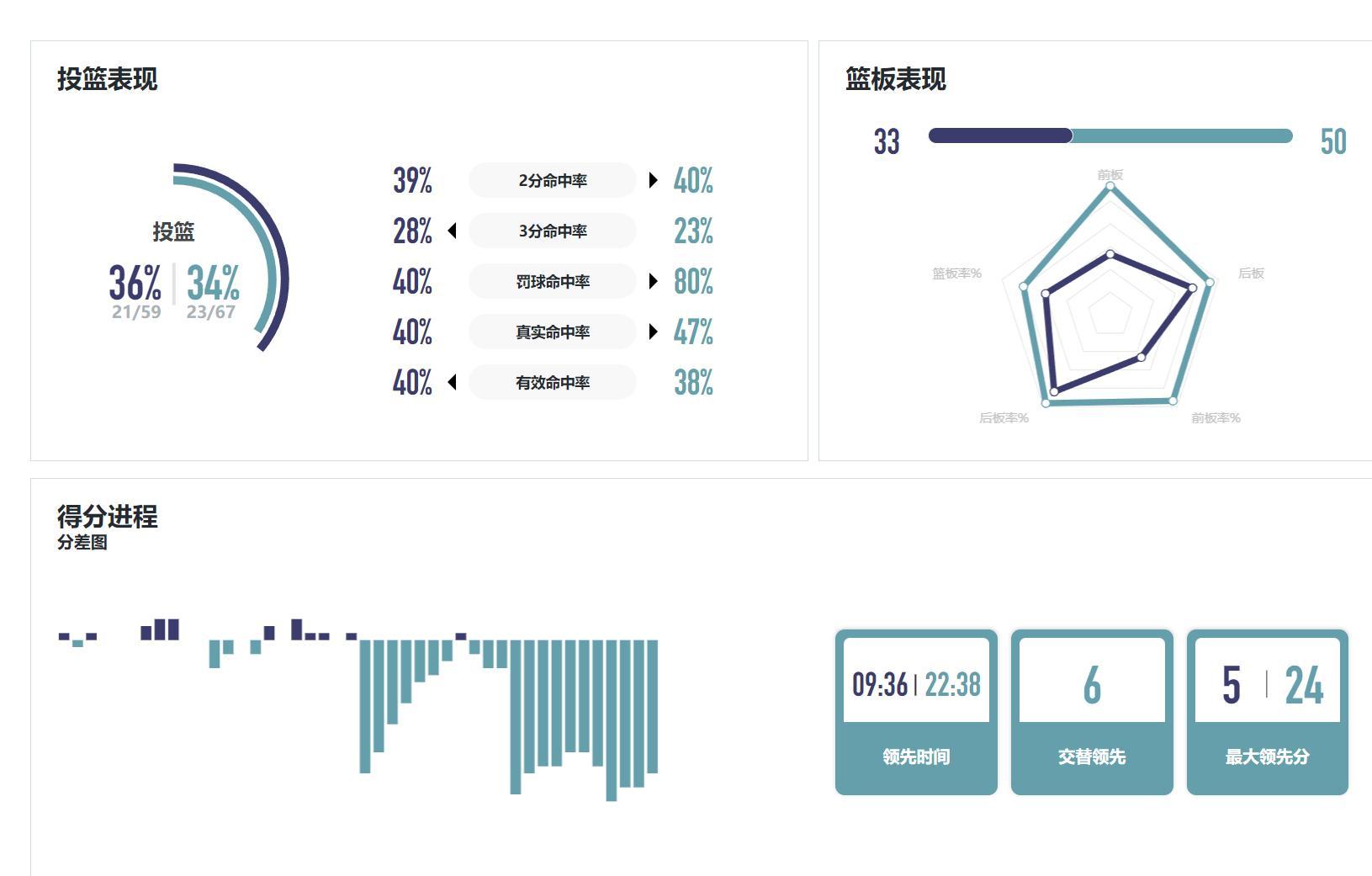 這場比賽四川隊贏了17個籃板球,兩隊只交替領先6次,四川隊領先時長達到22分38秒,四川隊最多領先到24分。