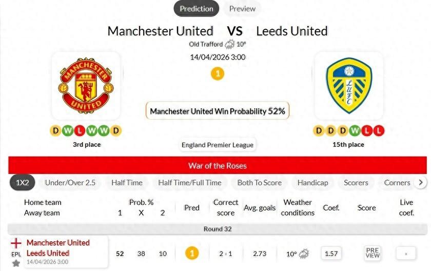 海外情報:英超 曼徹斯特聯VS利茲聯 賽前解析
