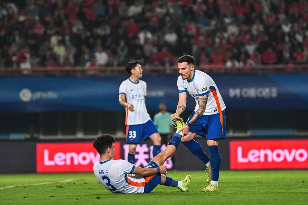 彭嘯在上個賽季就已有穩定的首發機會,本場比賽他繼續出現在右中衛的位置上,隊友和他的配合沒有問題。陳澤仕是泰山隊重點培養的中場球員,他早在2022賽季便完成了中超首秀,但過往的4個賽季他中超出場次數並不多,本賽季雖然此前的4輪比賽出場3次,但都是替補出場,時間(不計算補時)分別是11分鐘、27分鐘和25分鐘,替補出場時因對手體能的下降,其所承受的對抗壓力毫無疑問遠小於首發。