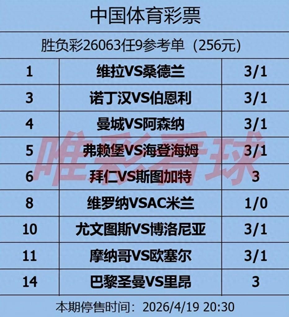 金石開:咱們今天來聊聊本期週日的足球賽事,由4場英超、3場德甲、3場意甲和4場法甲組成,一共14場比賽。整體來看,這期的難度還是較大的,四大聯賽各隊都有不同的戰意。我們先聊聊英超關鍵對決,阿斯頓維拉坐鎮主場迎戰桑德蘭。維拉目前穩居英超第4,身處歐冠正賽區,與第3的曼聯同分,搶分穩固排名的戰意強烈,主場火力強勁且陣容齊整;桑德蘭暫列第10,落後歐戰區僅2分,近期狀態回暖,豪取兩連勝且接連擊敗紐卡斯爾、熱刺,客場表現不俗,但主力中衛存疑。兩隊近10次交維拉佔優,本賽季首回合1-1戰平,此番主場再戰,維拉能否憑藉主場優勢拿下三分,桑德蘭能否延續連勝勢頭製造冷門,本場該如何抉擇?