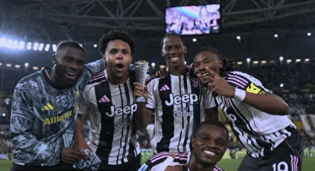 一次不夠?那就再來一次!尤文對陣博洛尼亞的下半場,替補登場的赫夫朗·圖拉姆用一記頭槌,爲斑馬軍團將優勢擴大到兩球,並在隨後與戴維、卡盧盧、麥肯尼和博加一起跳舞慶祝。終場哨響後,五人再次相聚在看臺下,跳起熟悉的舞步,而戴維手中還拿着本場最佳球員的獎盃。兩位進球功臣,兩個助攻球員,再加上回到左邊鋒“老本行”表現不錯的博加,這張圖裏的幾位球員,都是尤文這場的完勝功臣。