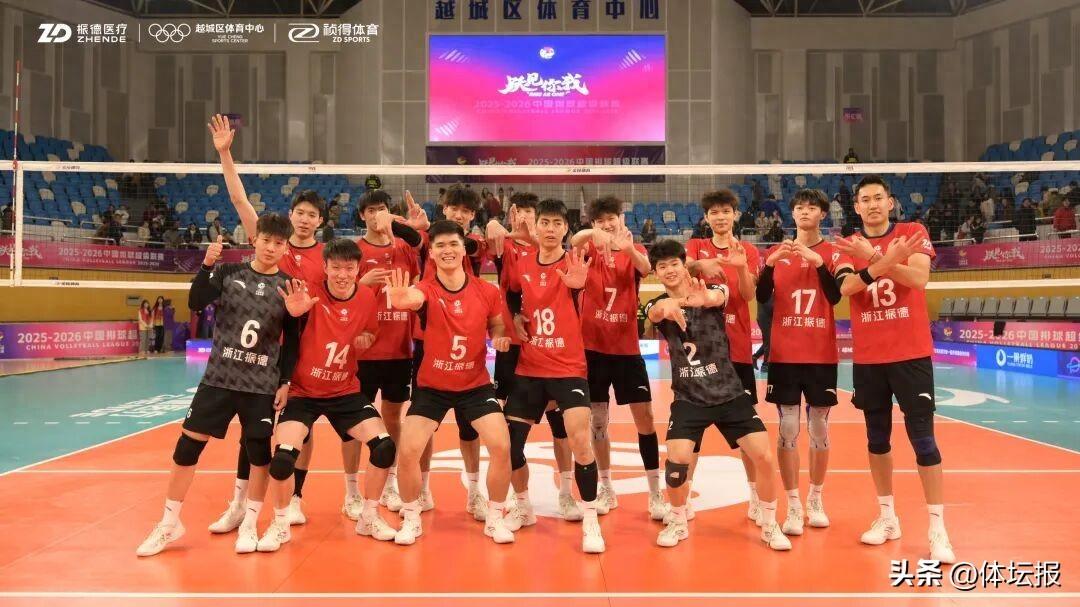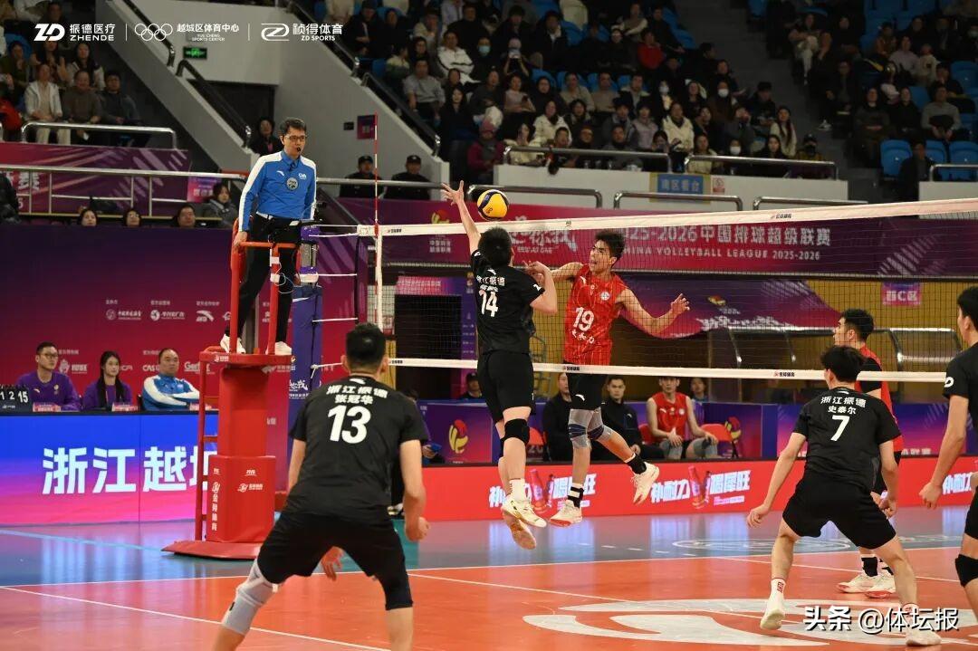 這場勝利只是驚喜的開始。2025年12月28日的主場首秀,面對擁有強力外援的衛冕冠軍上海光明男排,平均年齡更小的浙江振德男排將“敢打敢拼”的精神發揮到了極致。在五局大戰中,他們與衛冕冠軍上海男排展開激烈纏鬥,最終憑藉更堅定的信念以3:2險勝,引爆了紹興主場的氣氛。彼時的浙江振德男排,一度排名積分榜前三,讓人看到了“青年軍”的無限潛力。