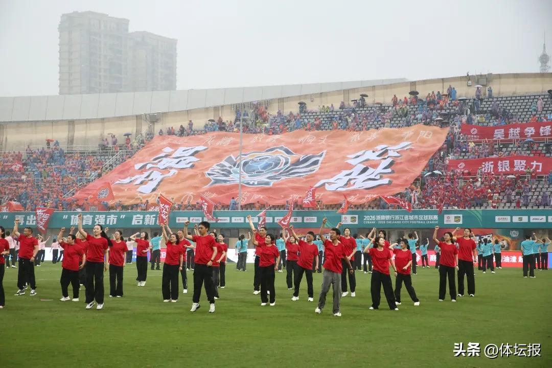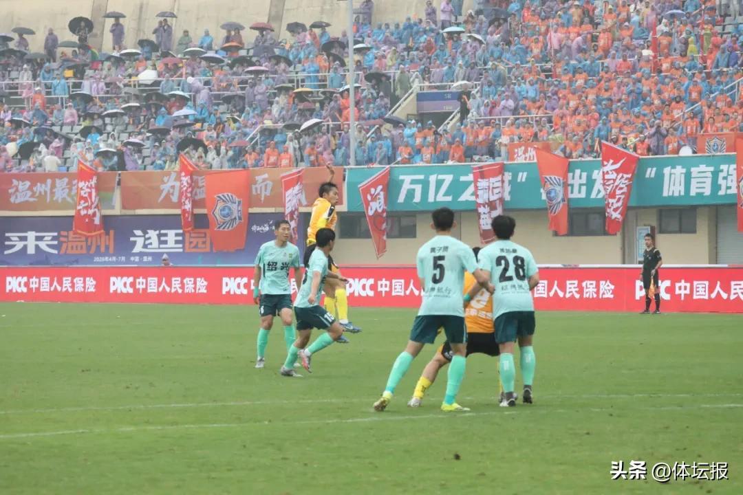 雖然天公不作美,但溫州球迷心裏很美。4月12日下午,溫州體育中心體育場迎來雨戰,在一萬餘名球迷助威下,主場作戰的溫州隊2:0擊敗紹興隊,拿下2026浙商銀行浙江省城市足球聯賽(吳越杯)兩連勝,領跑積分榜。