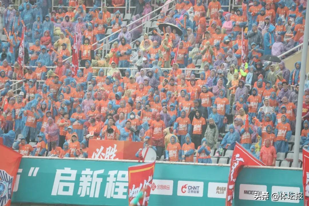 開賽前,原本陰沉的天空終於按捺不住,大雨開始侵襲溫州體育中心看臺。但是不少球迷無懼風雨,在露天看臺熱血奮戰,“溫州必勝”的巨型旗幟在風雨中緩緩展開。