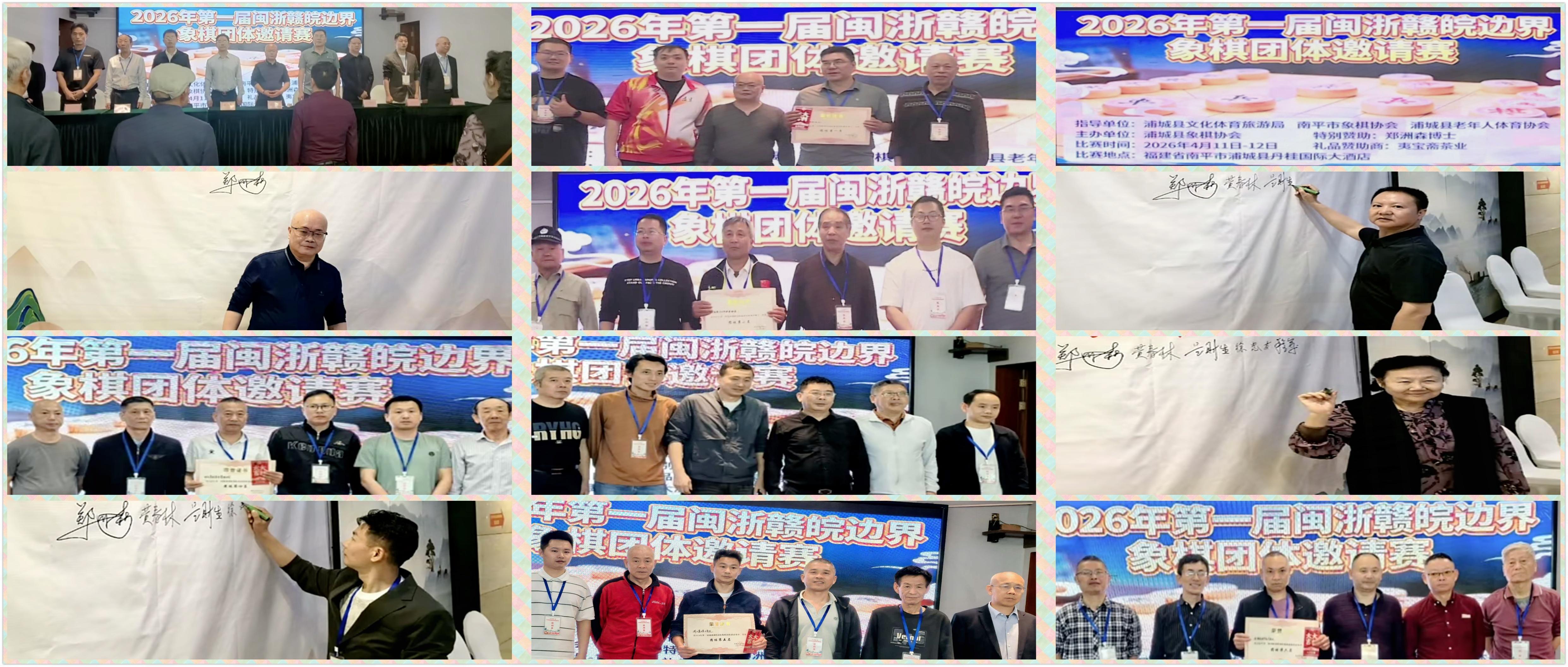 熱烈祝賀2026年第一屆閩浙贛皖邊界象棋團體邀請賽在閩北重鎮浦城圓滿成功,恭祝南平勇獲總冠軍,金冠羣豪,賀喜江山、信州、福鼎、義烏等優秀獲獎隊伍和棋手,爲贊助人鄭洲森博士,夷寶齋蘭財生,東道主浦城徐忠友會長等高度敬意,爲浦城閩浙贛皖四省賽和十六隊鼓掌,點贊,喝彩!