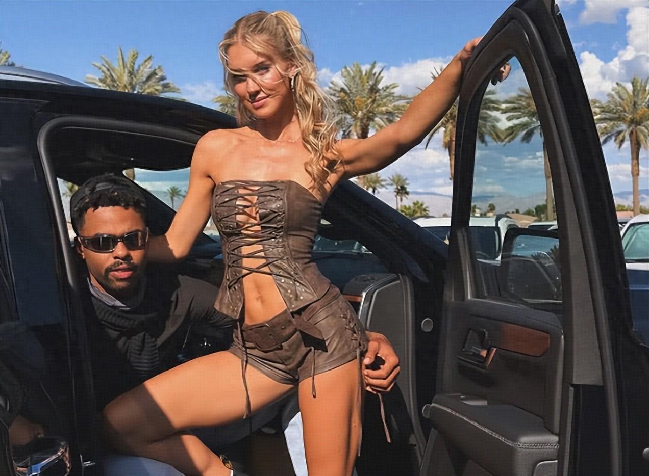 照片中,兩人在車上深情相擁,勞拉身着性感的“辣妹裝”,嫵媚動人,非常性感,作爲“NBA頂級花魁”,勞拉擁有極品身材,讓人羨慕。