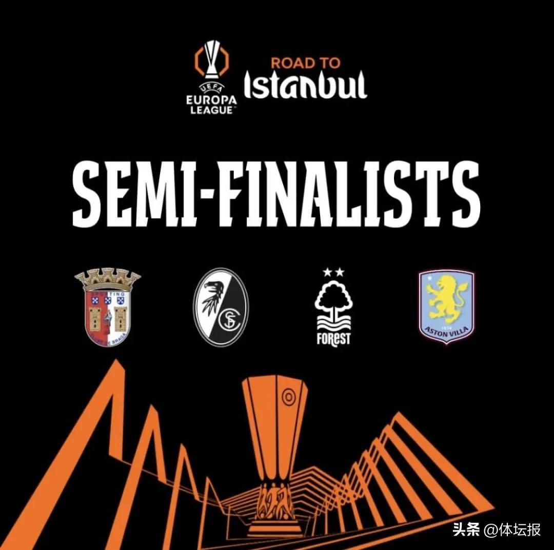 北京時間4月17日,2025-26賽季歐戰4強全部出爐(歐冠、歐聯杯、歐聯協):英超4隊(阿森納、阿斯頓維拉、諾丁漢森林、水晶宮),西甲德甲法甲各2隊(西甲:馬德里競技、巴列卡諾;德甲:拜仁慕尼黑、弗賴堡;法甲:巴黎聖日耳曼、斯特拉斯堡),意甲全軍覆沒。