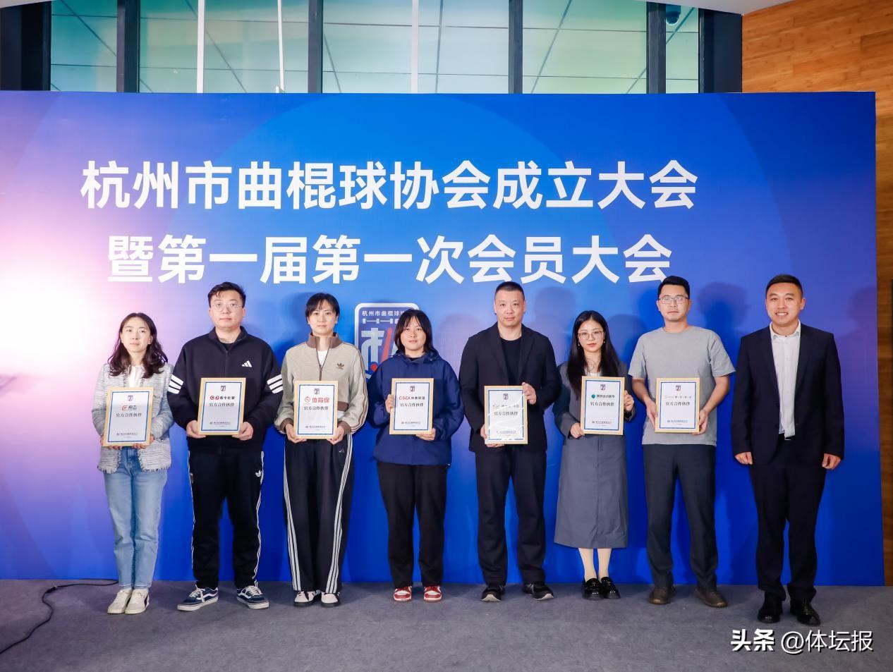 大會現場還舉行了官方合作伙伴授牌儀式,凝聚社會各界力量賦能項目發展。儀式最後,與會領導嘉賓共同爲協會揭牌,宣告杭州市曲棍球協會正式成立。