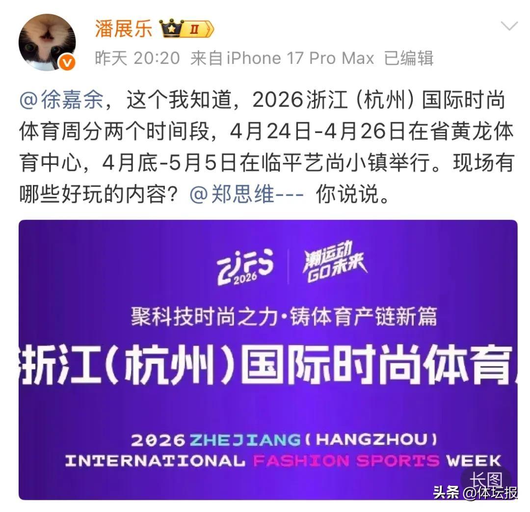 這些冠軍的話題都指向即將於4月24日至5月5日舉行的2026浙江(杭州)國際時尚體育周。