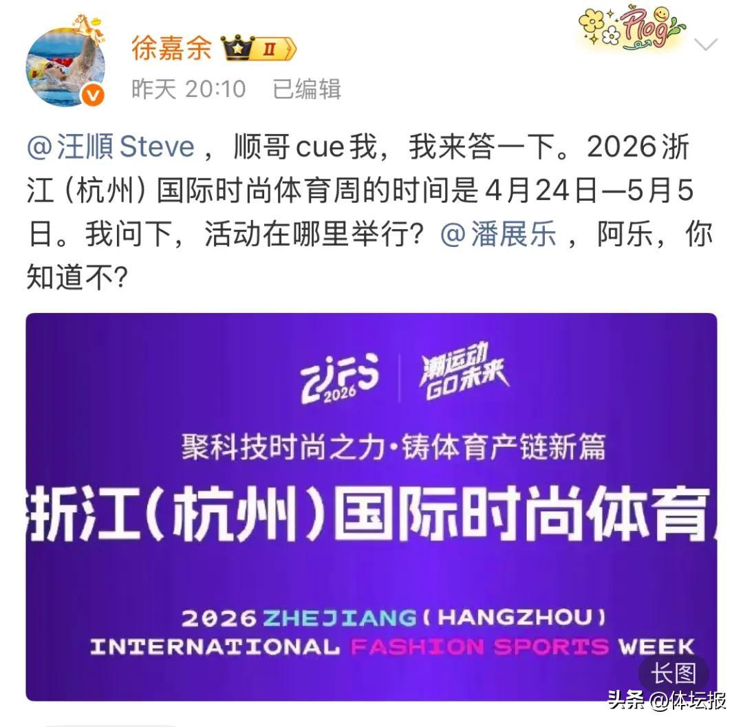 在這條微博中,汪順不僅向隊友徐嘉餘發起提問,還直接@了對方,看似普通的一次互動,卻很快在微博上引出了一場別開生面的“奧運冠軍套娃”。