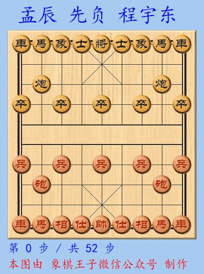 紅少兩兵之下,左馬遇黑3路過河卒所迫,倒回左側下二線,難於躍出,黑棋衝卒喫馬,紅52手丟子落負,程宇東進入冠軍決賽。