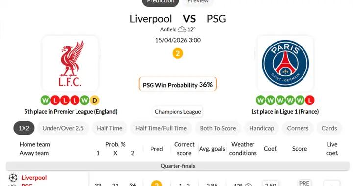 海外情報:利物浦VS巴黎聖日耳曼