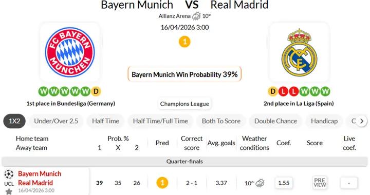 南大王主場統治力十足?海外情報:拜仁慕尼黑2-1皇家馬德里