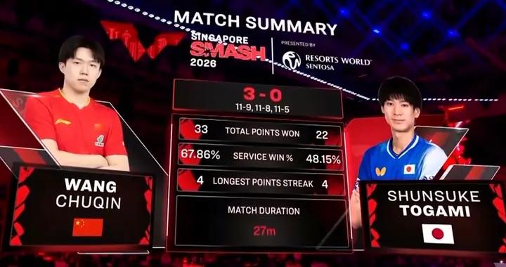王楚欽一戰證林詩棟還差得很遠!3-0戶上隼輔完全碾壓 交手3次全勝