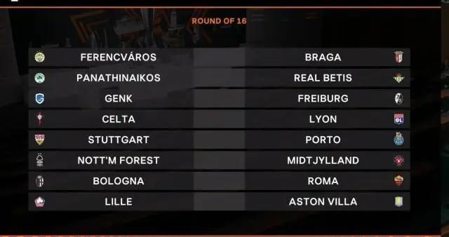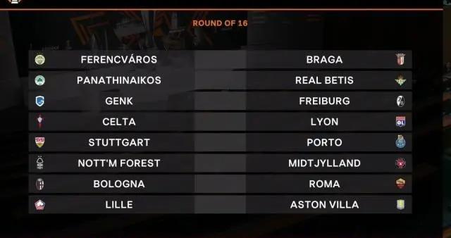 歐聯&歐協16強抽籤:維拉對陣里爾,羅馬打響內戰