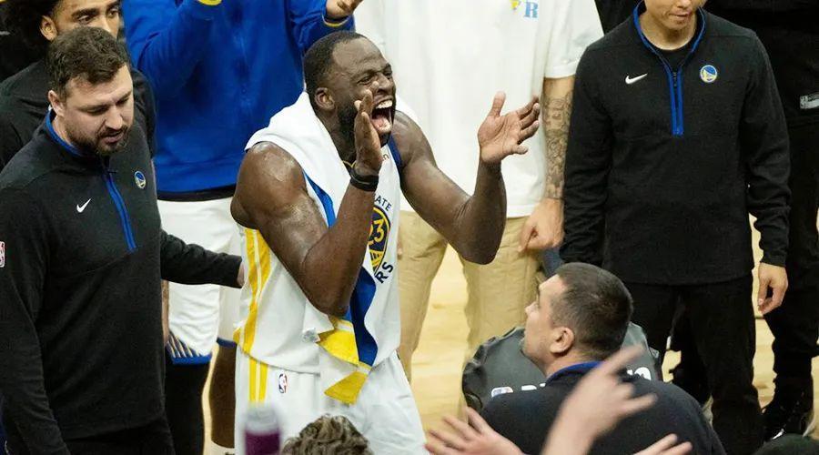 這是昨天晚上德雷蒙德·格林在賽後的新聞發佈會上的發言,這場比賽被驅逐的他一點都沒有被逼到懸崖邊的自覺,而是笑得像一個剛完成連環爆炸案的愉悅犯。
