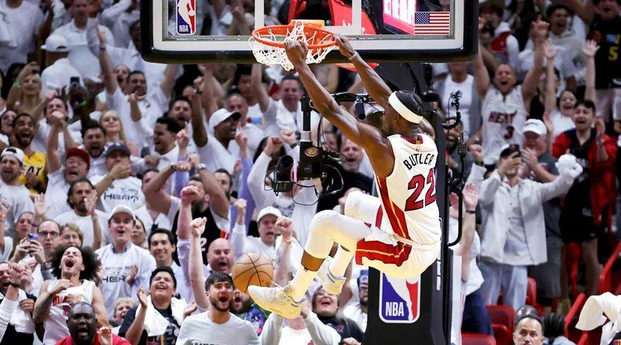 吉米·巴特勒暫時還不屬於那個世界。他沒有拿到屬於他的戒指,鑑於他職業生涯裏甚至還沒進過一次二陣,可能等他退役的時候他也不一定能進名人堂。但在昨天晚上,他做到了那些熱火前輩們從來沒做到過的事情,而帕特·萊利已經可以開始着手準備在那些球衣的旁邊給熱火隊的22號留一個位置。