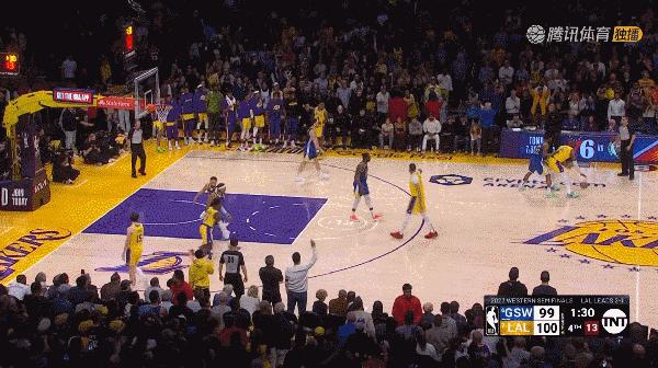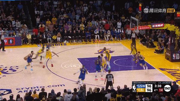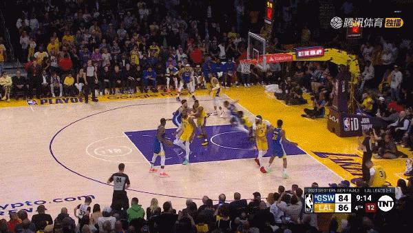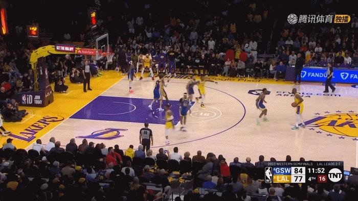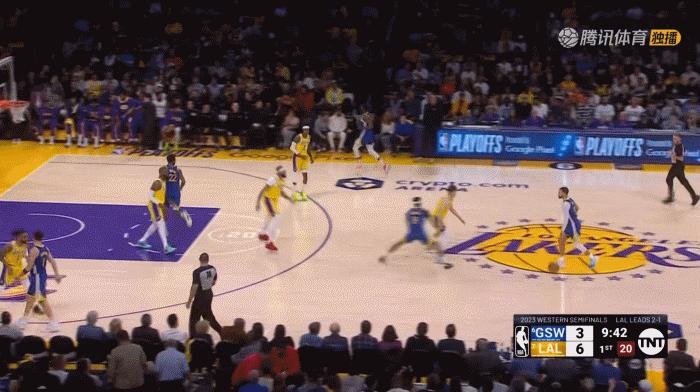 那麼來到G3,哈姆已經給出了自己的解題思路,他說,“我們希望能夠在追夢身前始終保持有一名球員”。於是湖人不再讓此前長期對位庫裏的範德比爾特去領防,而是由奧斯丁·裏弗斯先行對位,範德比爾特則在追夢的身邊等待着“庫追擋拆”的再次發生,不管有球無球,庫裏和追夢一旦發生位置交叉,範德比爾特就會餓虎撲食一般進行換防,此時再由他開始對位庫裏。圖中在換防後,庫裏被趕向籃下的方向行進,此時濃眉完全沒被調動到,守在內線安然送出一記封蓋。