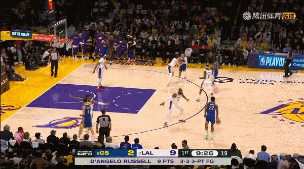 第二,佩頓在進攻端吸引了濃眉的對位,因爲濃眉不想被“庫追擋拆”調度,他肯定不會去對位追夢格林,其他庫裏、湯普森、維金斯都是外線得分手,也會形成對濃眉的調動,所以湖人開場以不變應萬變,任他幾路來,我自一路去。於是庫裏立刻和佩頓二世開展了大量擋拆配合,這一下後衛出身的佩頓二世,展現了他也能處理短下順以後傳球的能力,此外他對於籃筐的衝擊依然高效,全場9投7中拿下15分,甚至在有些回合裏,因爲他體型太小,濃眉儘量控制防守位置,想在防擋拆時兩頭兼顧,卻會被佩頓在眼皮底下溜走,一扭頭才發現對手從自己的視線盲區裏鑽出來得分了。
