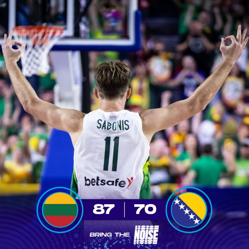 立陶宛外線的格里戈尼斯首節命中了4個三分球,爲球隊充分地拉開了場上空間。而球隊的內線雙塔——瓦蘭丘納斯和薩博尼斯也都展現了他們強硬的一面,瓦蘭丘納斯貢獻了13分和15個籃板,薩博尼斯也有12分和6個籃板,整體實力更加強大的立陶宛最終以87比70擊敗波黑,拿到了B小組的最後一張突圍門票。