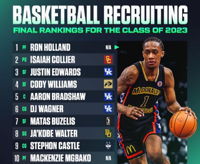 近日,體育網站247Sports更新了2023屆高中球員的排名。