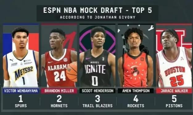 目前美媒網站將文班亞馬和米勒列爲前二順位,開拓者用探花籤只能選擇亨德森,但是利拉德和西蒙斯的開拓者,對亨德森並沒有強烈的需求。