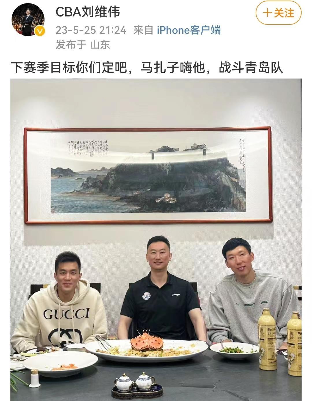 2022-23賽季CBA聯賽剛剛結束,有關於各支球隊的引援交易話題,就登上了各大社交媒體的熱榜,就在剛剛,青島男籃主教練劉維偉,曬出了一張他與郭艾倫和周琦兩位國手的合影,並且附文表示:“下賽季目標你們定吧!馬紮子嗨他,戰鬥青島隊!”一時間引發網友的廣泛熱議,瞬間登上微博熱搜,如若這筆簽約真的發生,那麼恐怕CBA聯賽的格局將會迎來地震鉅變。