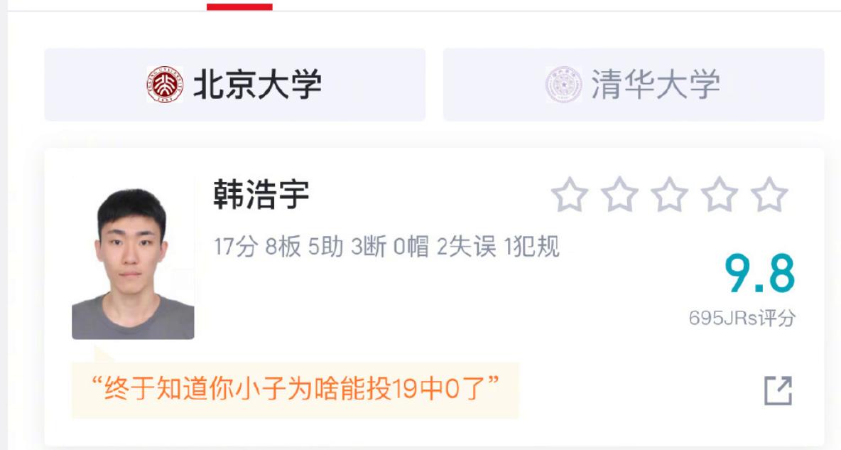 最終,一度落後2位數的北大,實現了逆轉,以69-68逆轉險勝清華大學,先下一城。