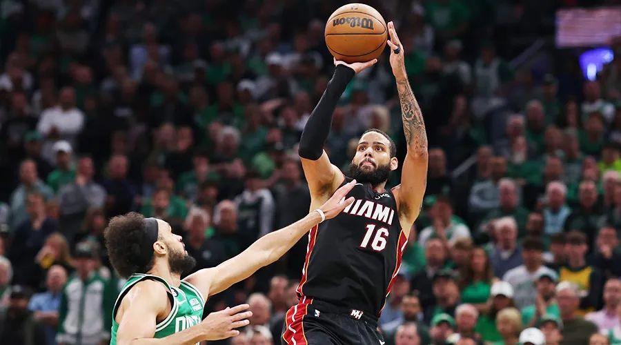 直到他在東決搶七戰中,用16次出手砍下26分10籃板,猶如首輪的巴特勒附體,命中那些巨星纔敢出手的後仰跳投,甚至在東決MVP的評選中幾乎擠掉巴特勒,他的名字才真正脫穎而出,登上全美熱搜第一。人們這才發現,凱萊布·馬丁,這個常規賽得分不過個位數的角色球員,在一整輪東決中場均19分,命中率高達60%,已經成爲熱火毫無爭議的第二得分手。