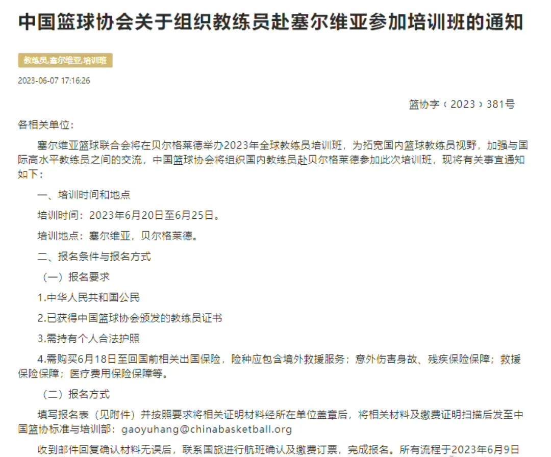 依照中國籃協官網發佈的一則通知,籃協將在6月下旬,組織教練員前往塞爾維亞進行學習深造,一直以來,中國籃球都只注重球員的素質發展,忽略了對教練員綜合水平的提升,但實際上教練作爲球隊運行的大腦與掌舵者,其業務水平的高低,更能直接影響球隊的整體發展,同時國際上一些先進的籃球理念,在教練員用人選人方面,也將帶來更爲系統與直觀的提升。
