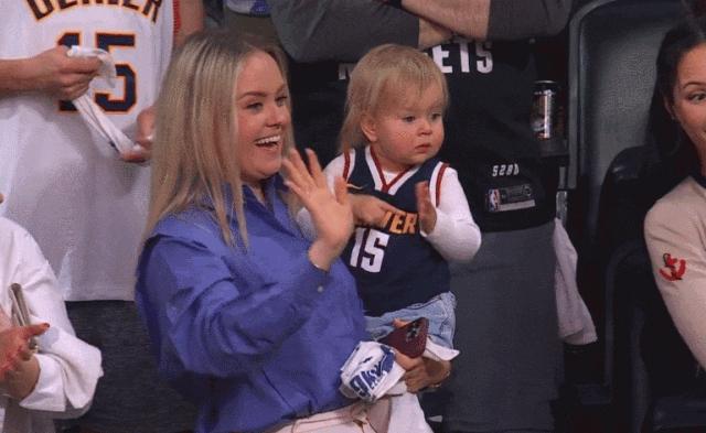 事實上,這也不是約基奇第一次做這樣的慶祝動作,在北京時間5月2日,掘金太陽系列賽的G2賽後,約基奇就已經和女兒有過這樣的互動,兩個人做了一模一樣的動作遙相呼應,當時就已經有不少美國媒體對此產生了誤讀。