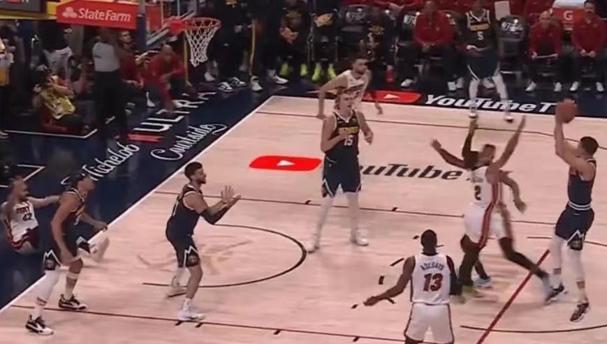 比如下面這個回合,掘金隊有三名球員處於空位,小波特居然還是選擇幹拔。