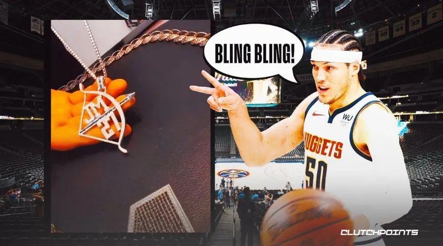 阿隆·戈登在掘金找到了自我,只換隊一次的他甚至直言“掘金是我這輩子待過最喜歡的球隊。”他的愛意不止獻給約基奇,還爲穆雷定製了一款“JM27”字樣、弓箭造型的鑽石吊墜。