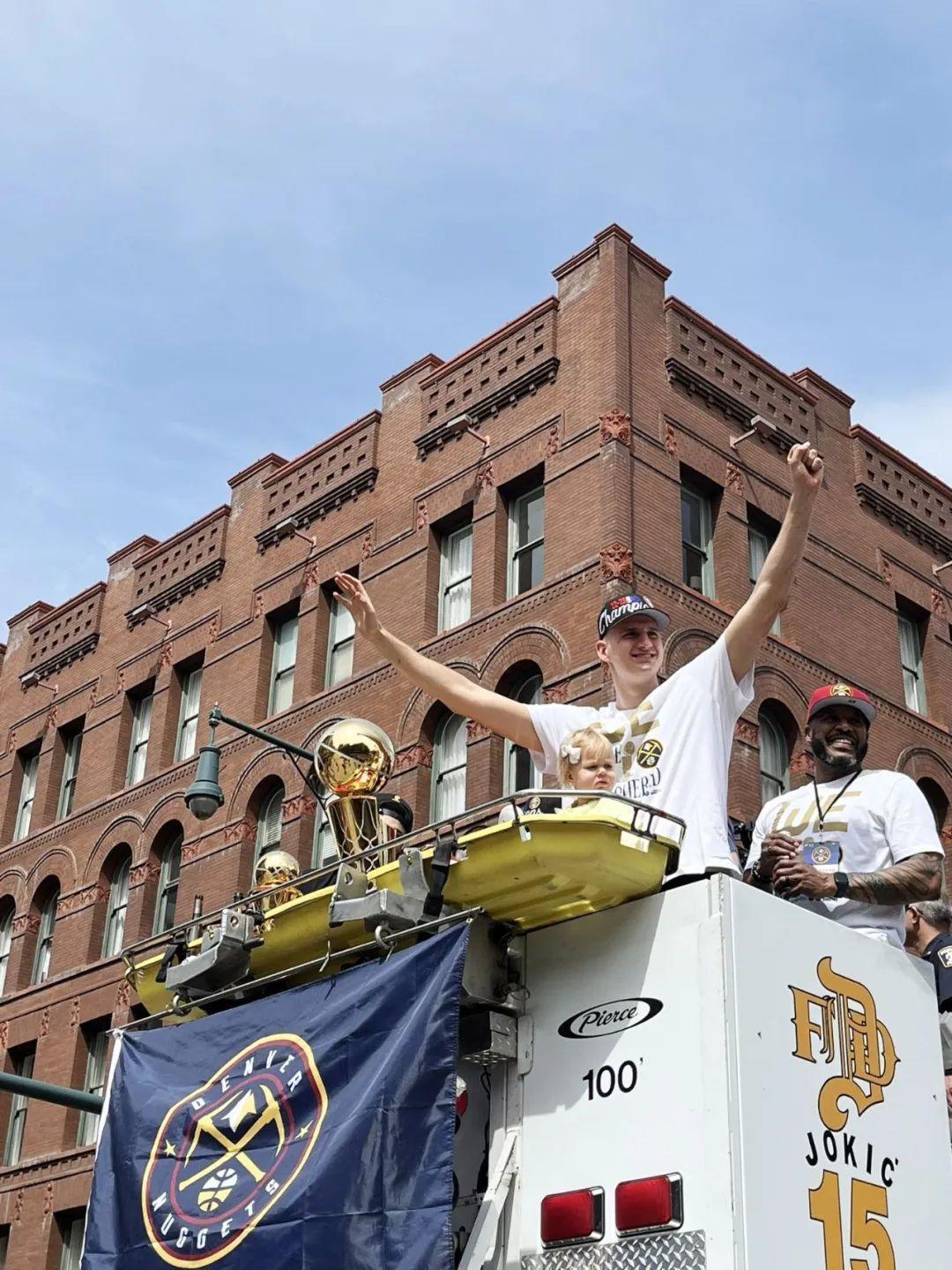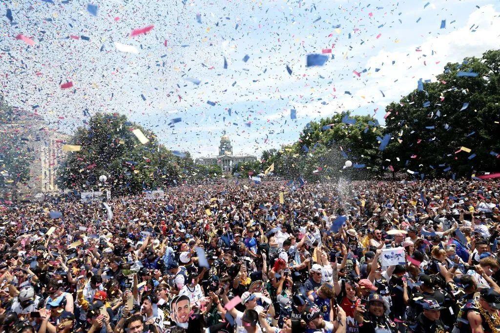 籃球是屬於超級巨星的,當然更是屬於普羅大衆的,看看這些歡聚在科羅拉多州市民中心公園的球迷吧,從9個月到90歲的球迷都來了。其中有些人從1966年這支球隊還叫“丹佛火箭”的時候就開始在等待這樣的遊行。他們站在冠軍的門外敲了57年的門,連總決賽的風景都沒見過,以至於當大門真的對他們敞開時,他們甚至有些手足無措。