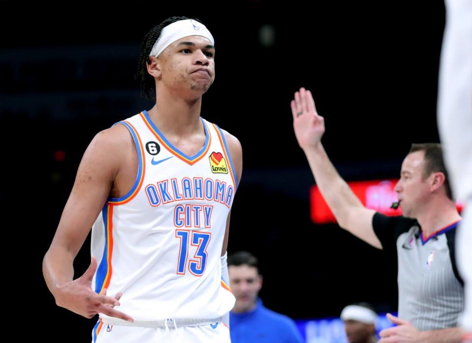 2022年選秀大會上,爲了避免烏斯曼-迪昂被提前選走,雷霆不惜付出三個受保護的未來首輪籤從尼克斯手裏換來11號籤,從而將其摘下。