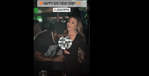 視頻裏,喬丹之子依偎在皮蓬前妻的胸上,畫風非常大膽。