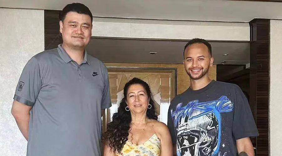 和平日的紅頭文件不同,這一條消息,中國籃協的官方配圖是負責人姚明,和李凱爾以及其母親蘇珊娜的合影。