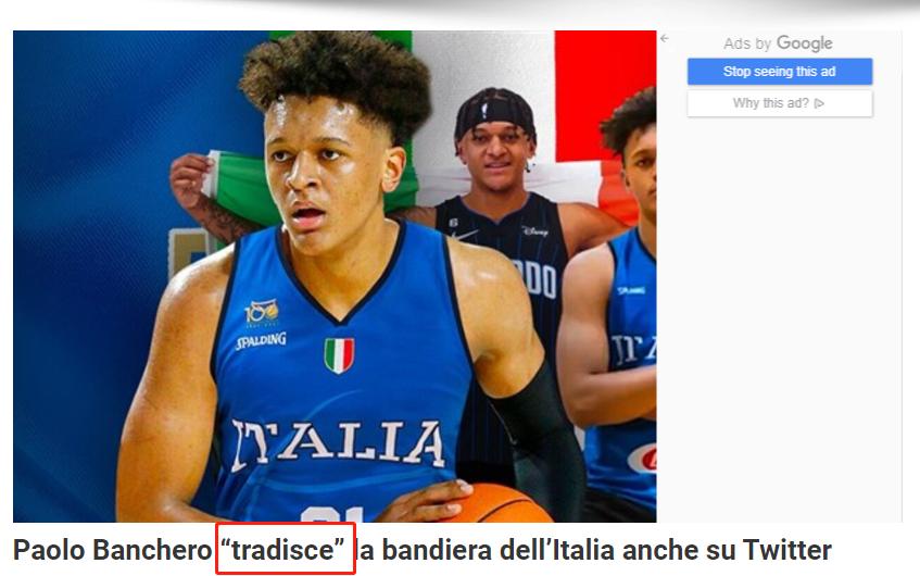 意大利媒體Basketuniverso在撰文時,更是用到了背叛(tradisce)一詞,說話十分難聽...